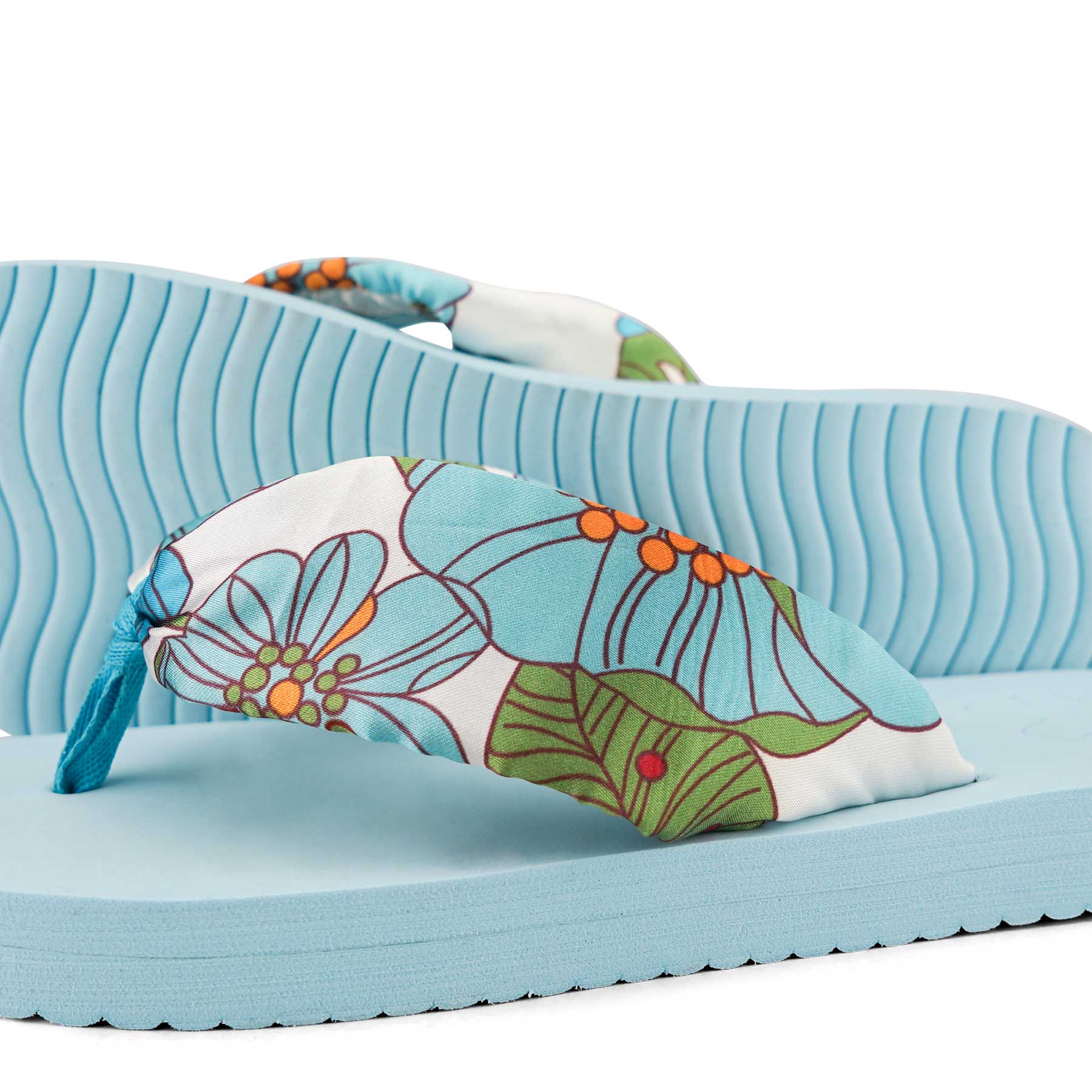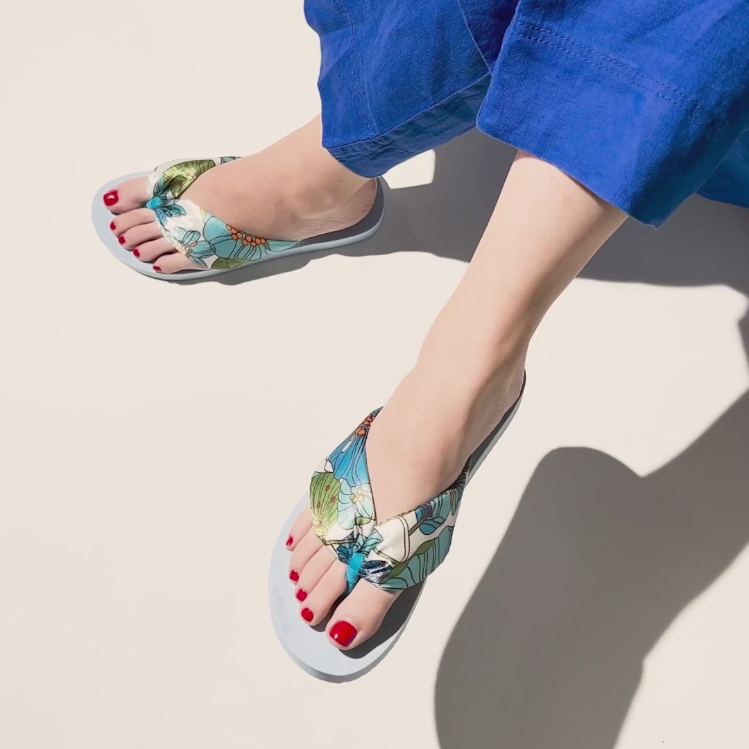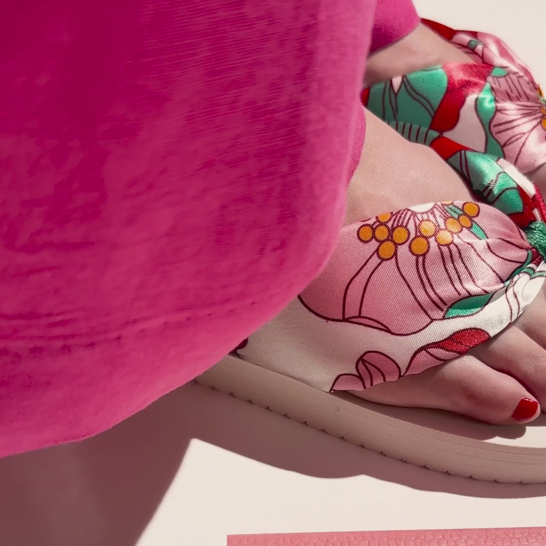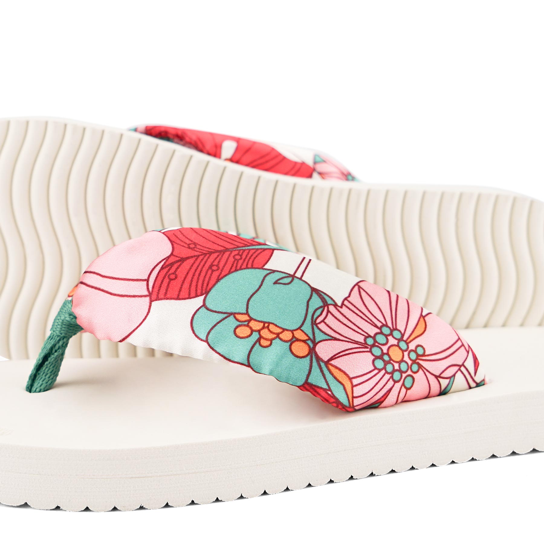 The floral printed, padded upper material gives this shoe a summery lightness. The wave profile sole provides good grip and does not heat up in the sun.