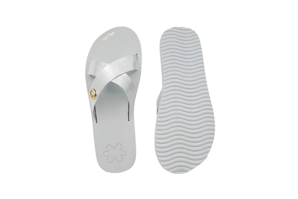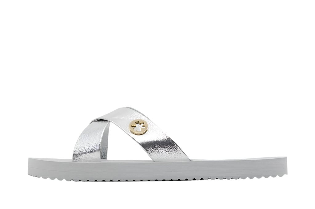 A wonderfully comfortable pool mule with a shimmering soft strap for optimum comfort.
