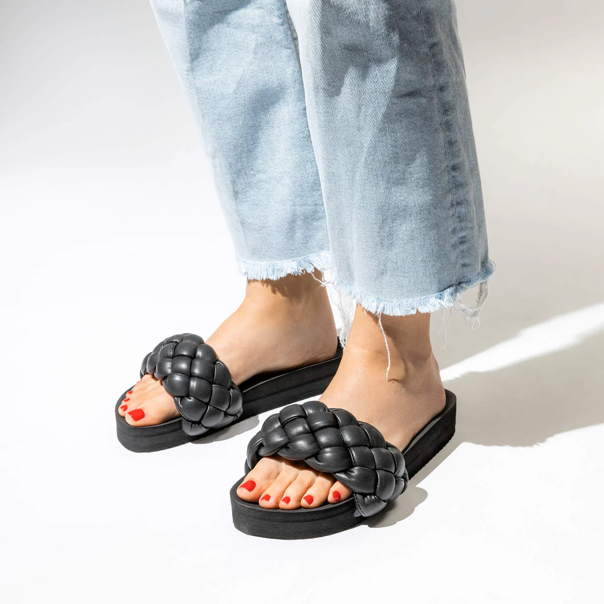 What more could a trendy shoe want? With its thick sole and braided upper, the pool*weave has real fashion potential and is especially easy to combine. A favorite shoe with maxi dresses, denims and shorts.
